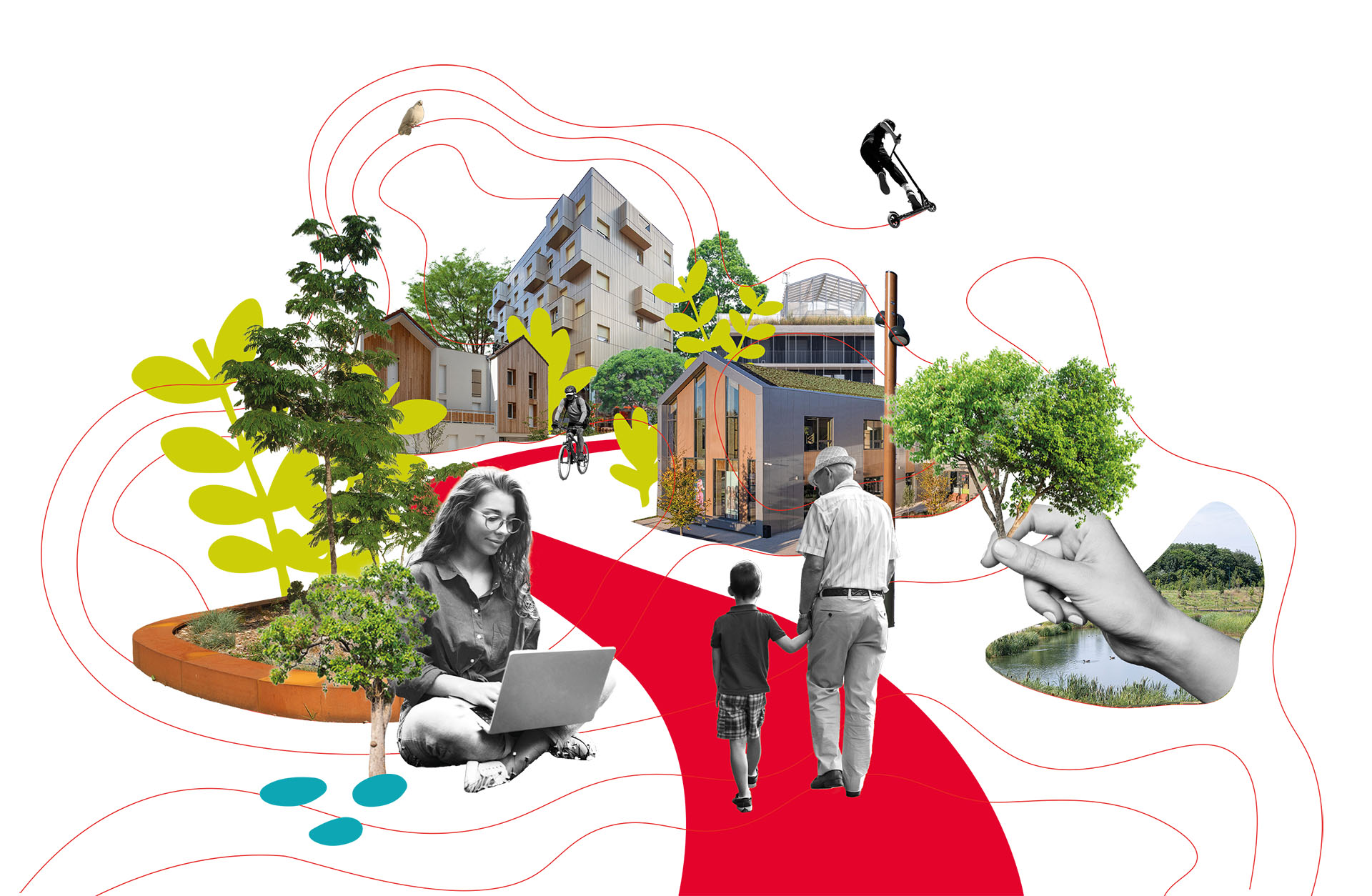de nouvelles manières de concevoir les espaces publics : imbrication avec le grand cycle de l’eau, intégration de la nature en ville, et développement des mobilités douces.